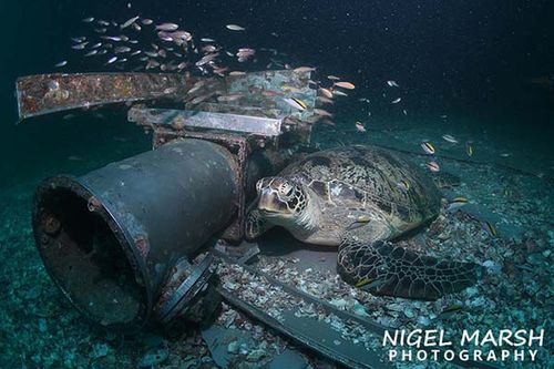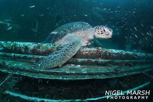 IMAGE BELOW - GREEN TURTLE ON HMAS TOBRUK